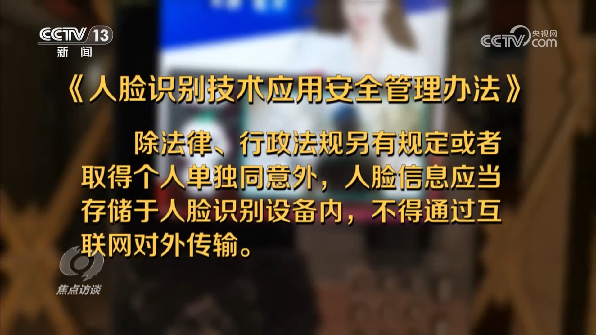 中国信息通信研究院互联网法律研究中心主任何波:“首先,需要具备安装的必要性,而且这个必要性必须是为了维护公共安全所必须的,比较典型的是在火车站或者是安检的一些地方;第二个必要性是必须依法划定采集范围,不能超范围去采集;第三个要设置明显的标识,比如在人脸识别的采集区域里面,需要有个标语也好,标牌也好,这样确保消费者的知情权,让大家知道我是处在被采集人脸信息的状态下面。”